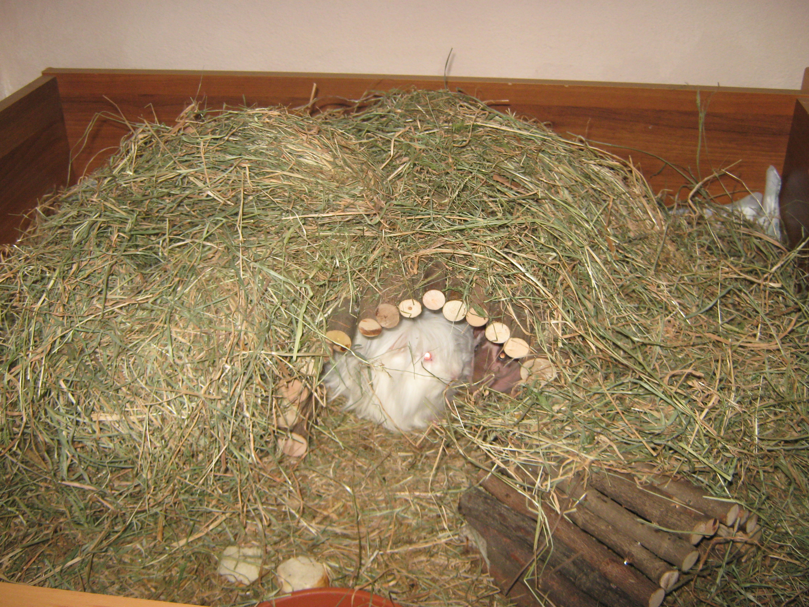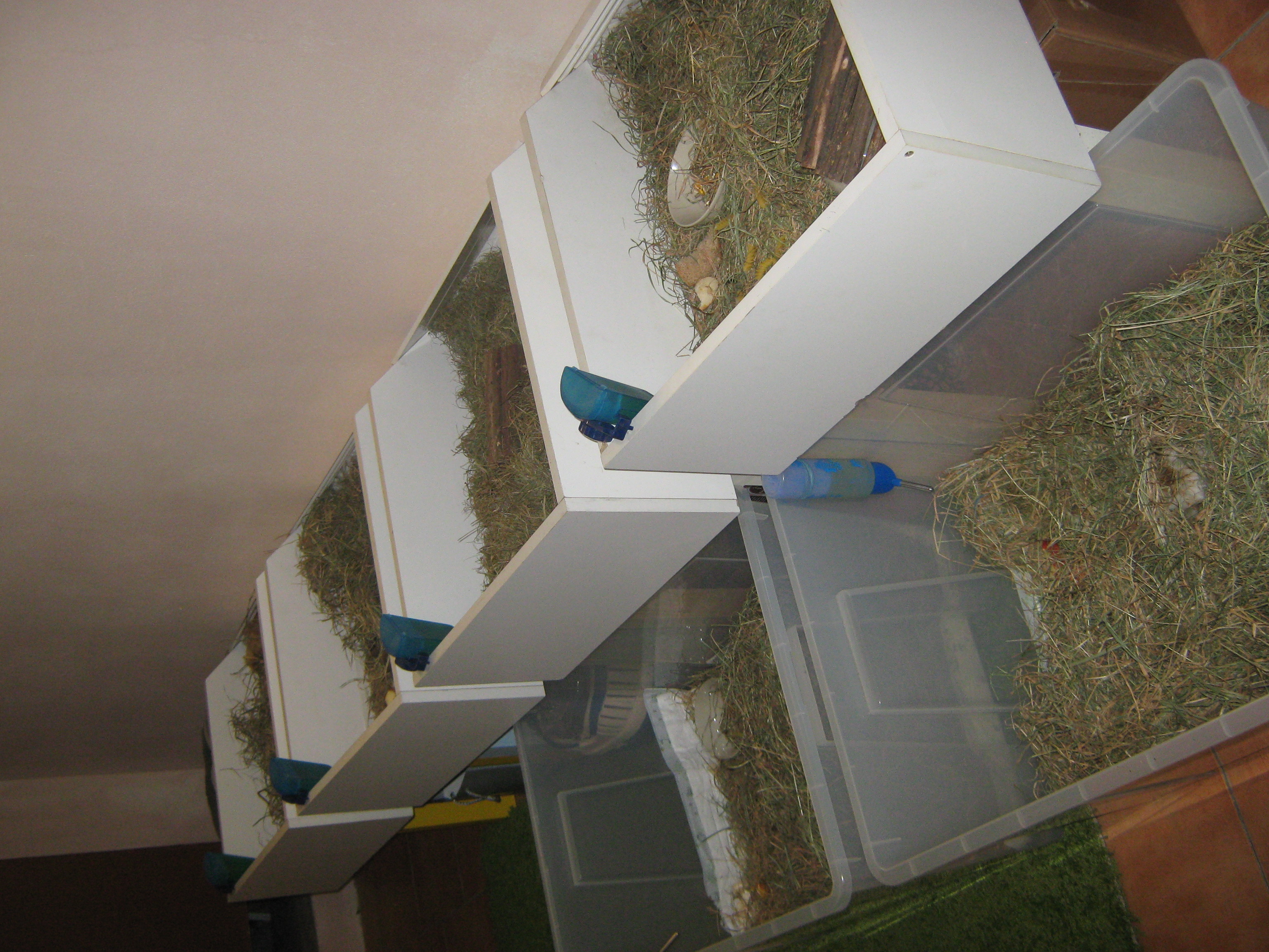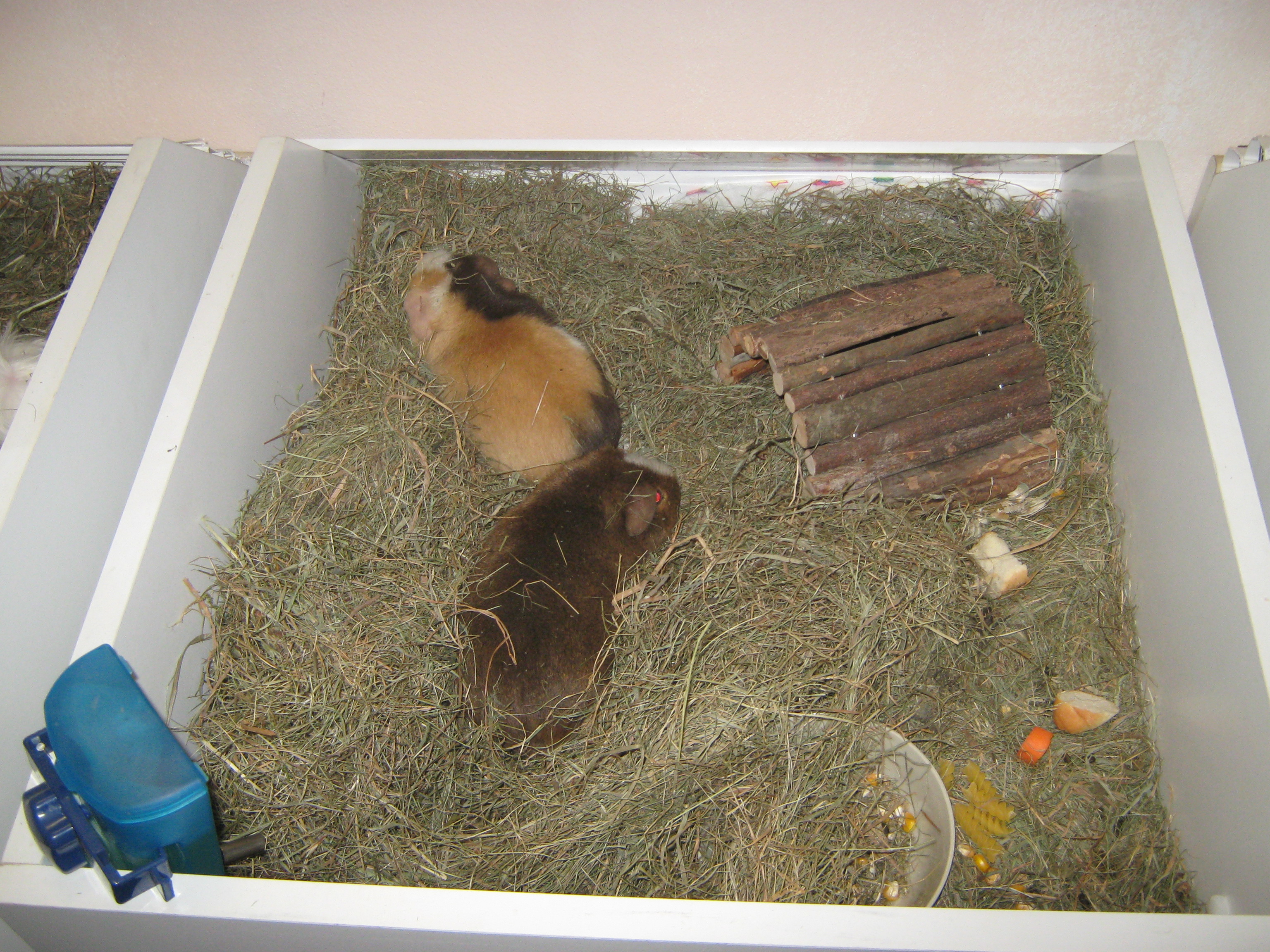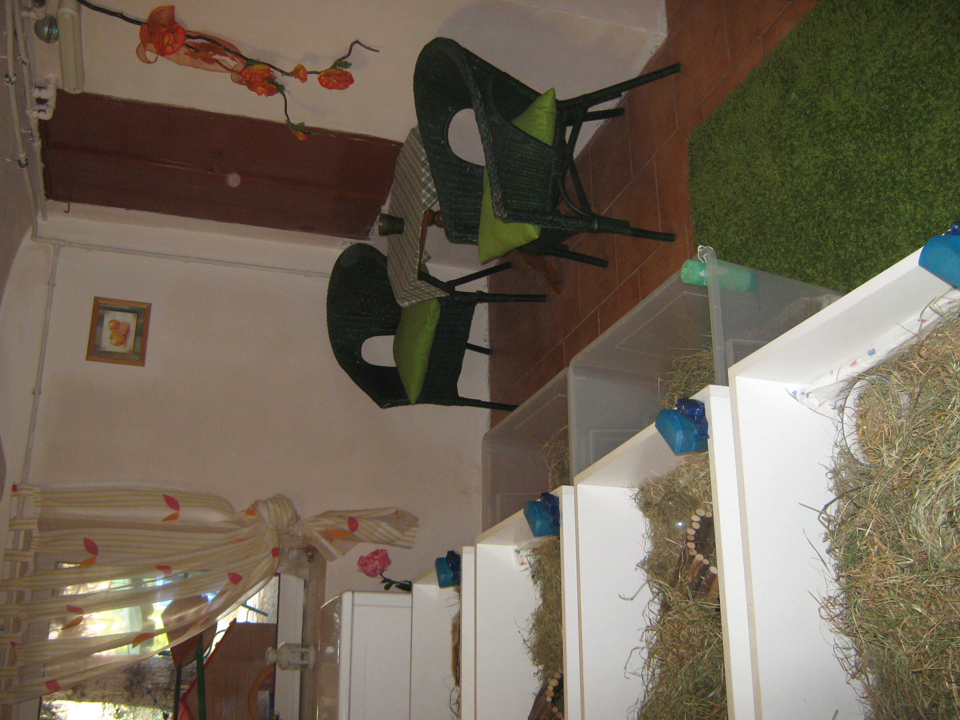 Takto bydlí naše morčátka, mají pokoj jen pro sebe, výběhy a boxy. Dostatek místa i světla. Jsou vymazlená našimi dětmi a zvyklá na ostatní členy domu, kočky a pejsky, ale raději pod dohledem. Neboť náš Falko labrador je vždy celé olíže a pak je na řadě koupání a foukání, což se některým morčátkům moc nelíbí.